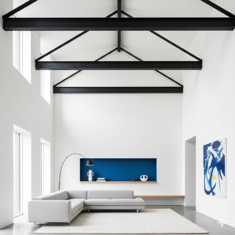 - Estilo Industrial: Pinte vigas de preto fosco ou grafite contra paredes brancas ou off-white.