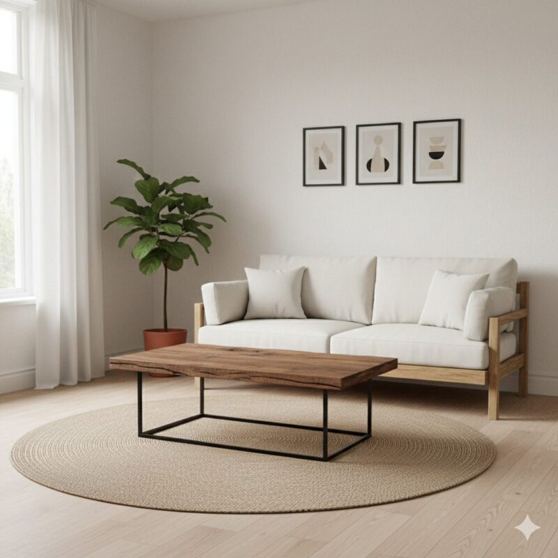 - Mesas de Centro: Devem ter altura semelhante à do assento do sofá (40 a 45 cm) e dimensões médias de 60×100 cm para permitir fácil mobilidade ao redor.