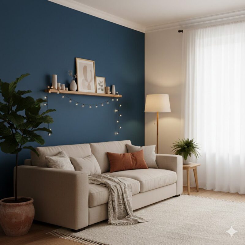 - Destaque: Use cores mais saturadas ou intensas em detalhes ou paredes de destaque para criar pontos focais e evitar que o ambiente fique pesado.